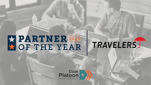 Travelers, Code Platoon’s 2024 Partner of the Year, helps veterans and military spouses build lasting tech careers through its Engineering Development Program.