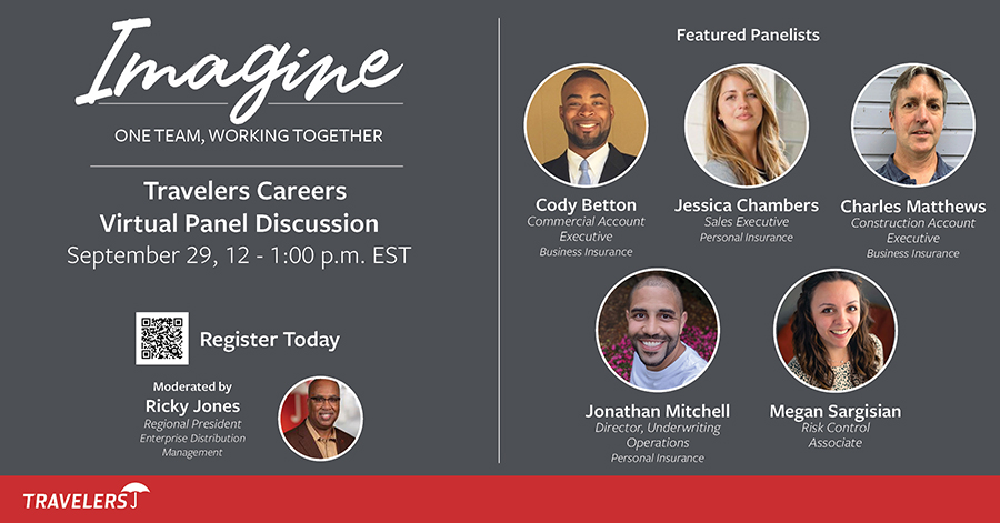 From underwriting to sales to risk control, each career opportunity at Travelers is unique and each employee’s path to a fulfilling career stands out from the next. If you have ever wondered how your skill set could lead you to a rewarding career, we invite you to hear from five Travelers employees at our next panel event. These five employees in varied positions and stages of career will share what it is like to work in their current role, how